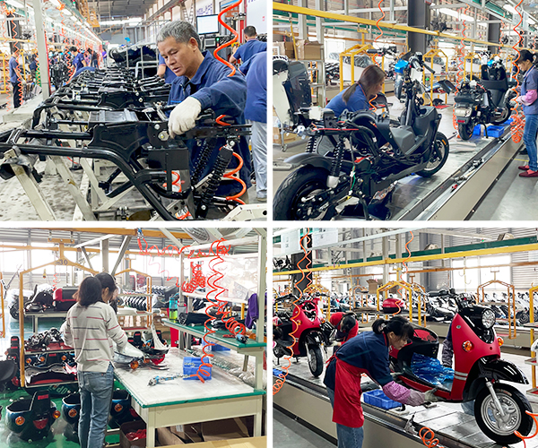 At present, the company has about 500 employees, with an average age of 30. It is worth mentioning that quality inspection and R&D account for about 10%, and have a number of independent intellectual property rights.The company has realized multi-line automatic assembly line production, including: 2 two-wheel production lines, in addition to electric motorcycle lines, it also includes supporting motorcycle chassis dynamometer, drum speedometer test bench, exhaust gas tester, motorcycle R&D and testing equipment such as road tester, special axle (wheel) weight tester for motor vehicle testing, complete vehicle and parts testing line.